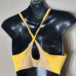 Victoria’s Secret 34D women’s yellow and gold w beige shimmer lace detailing