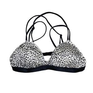 Victoria’s Secret Black & Cream Animal Print Strappy Bra Size Large NEW