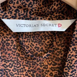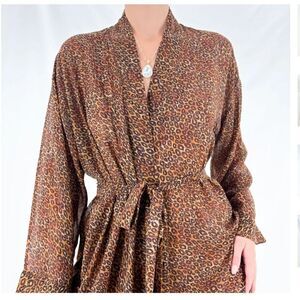 Victoria's Secret Brown + Black Leopard Print Sexy Sheer Satin Robe lingerie
