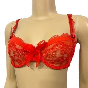 Victoria’s Secret Designer Collection unlined demi floral lace / mesh bra Red