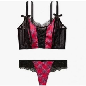Victorias Secret Dream Angels Satin & lace Corset Bra & Thong Panty Red Plaid M