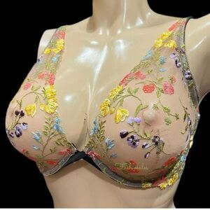 Victoria’s Secret Dream Angels Unlined Plunge Floral Embroidered bra multicolor sexy sheer bra