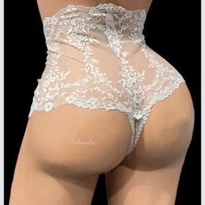Victorias Secret High-waist Floral Mesh Lace Thong Panty Beige Small