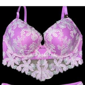 Victorias Secret LUXE Lingerie Lined Dem Embroidery Mesh / Flower Appliqué Bra