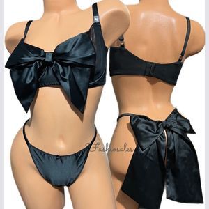 Victorias Secret Luxe Satin & Embellished Bow and V-string set