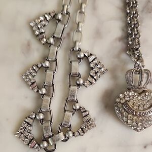 Chic collection featuring a silver heart pendant necklace and a gold chain with pearl accents. Ideal for elegant styling.