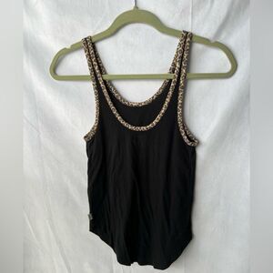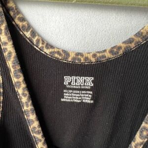 Victoria’s Secret PINK Black Ribbed Tank Top with Cheetah Detail size XS