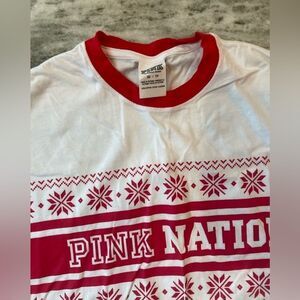 Victoria’s Secret PINK NATION Long Sleeve oversized fit white red Christmas