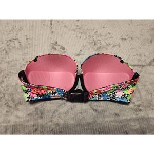 Victoria's Secret PINK Strapless Push Up Bra Size 34D Leopard Floral