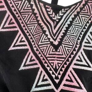 Victorias Secret PINK Swimsuit Top Black Halter Embroidered Southwestern Bohemian Boho Classic Swimwear Top