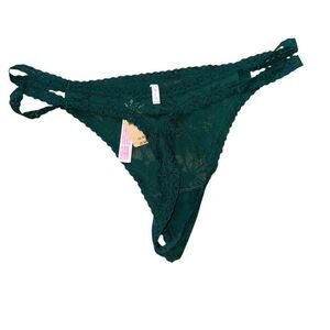 Victoria’s Secret Pink 2021 Sz M NWT dark emerald green floral lace double, two string thong