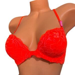 Victoria’s Secret Pink Date Push Up Padded racerback front closure bra orange