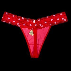 Victoria’s Secret Pink Lace Waist Thong Panty Red XXL
