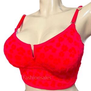 Victorias Secret Pink Padded Velvet Flowers Long bralette bra crop top Red Small