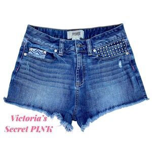 Victoria’s Secret Pink SZ 4 Cheeky High-Rise Denim Factory Distressed Sh…