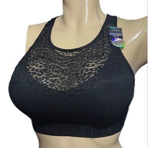 High neck animal print mesh bra