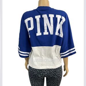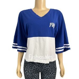 Victorias Secret Pink Varsity Short Sleeve Cropped V neck Oversized Tee XXL