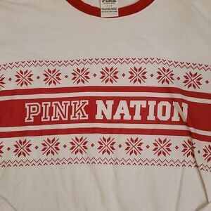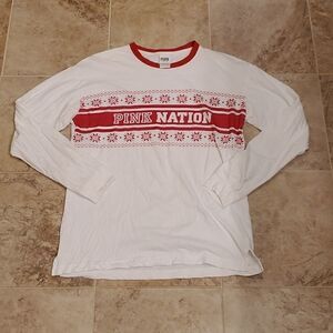 Victoria's Secret Pink red and white holiday themed Pink Nation long sleeve top
