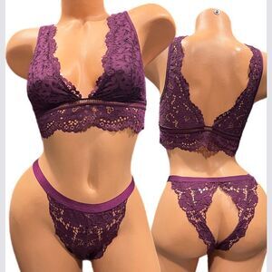 Victoria’s Secret Set Sexy Unlined Lace Bralette M & Peekaboo Cheekini Panty L