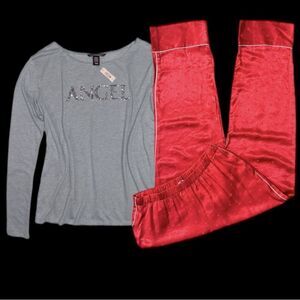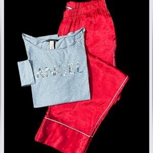 Victorias Secret Silky Satin thick pants & soft bling Angel top pajama set red L