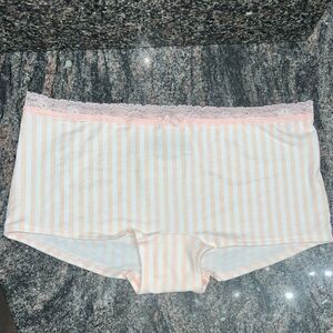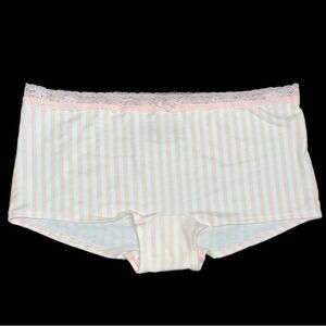 Victorias Secret Smooth Cotton & Lace Pink white Striped Boyshort Shortie L