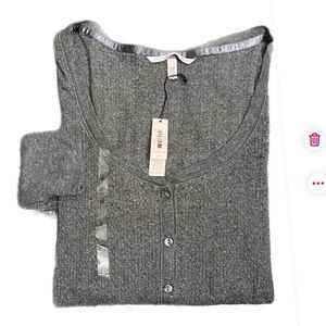 Victorias Secret Soft Metallic Henley Pajama top long sleeve dark gray