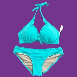 Victorias Secret Swim Capri Ruffle Bikini top Removable Push Up & Bottom 38C XL