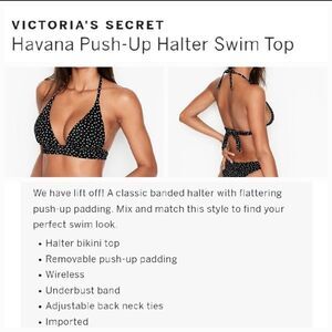 Victorias Secret Swim Havana Push Up Halter Padded Bikini top Black White dots