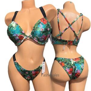 Victorias Secret Swim Set Bombshell Shine Strap Add-2-Cups Push Up Top & Bottom