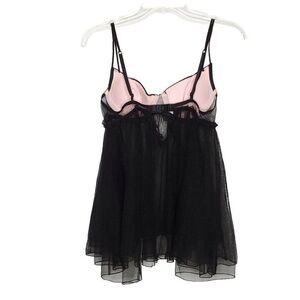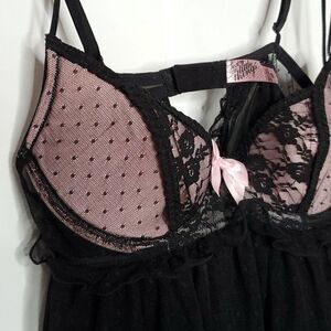Victoria's Secret Teddy Babydoll 34B Black Pink Floral Lace Mesh Bra Lingerie