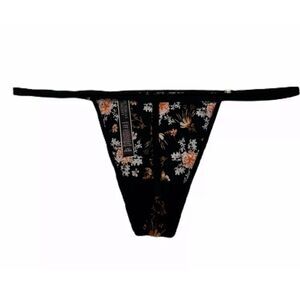 Victoria's Secret Very Sexy LOVE Smooth Satiny V string panty Black Floral XL