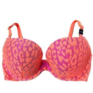 Victoria’s Secret Very Sexy PADDED DEMI Thick Padding lace bra orange pink 32DD