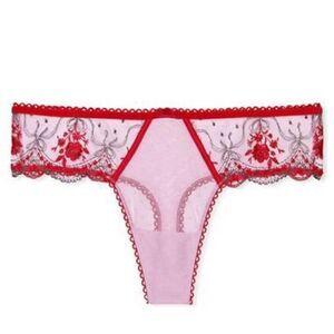 Victorias Secret Very Sexy Rose and Bows Embroidered Sheer Mesh Thong Panty