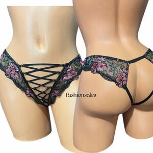 Victorias Secret Very Sexy Sheer Embroidered Mesh Crotchless Brazilian panty M