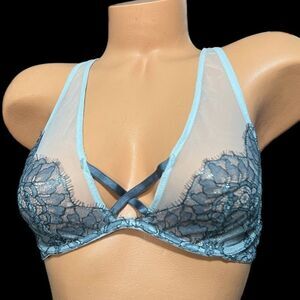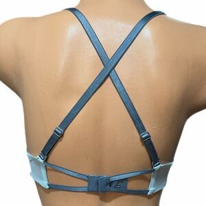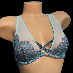 Victoria’s Secret Very Sexy Sheer Mesh unlined Plunge bra metallic lace gray 34B