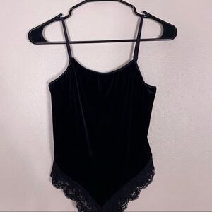 Great condition Victoria’s Secret Vintage Black Velour Lace Trim Bottom Cheeky Bodysuit