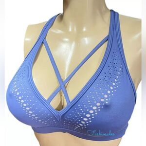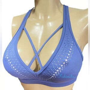 Victoria’s Secret Wet Look Strappy Front unlined crisscross back sport bra blue