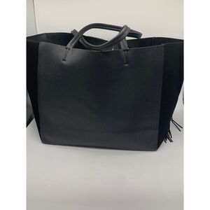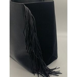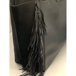 • Victoria’s Secret Women Black Faux Leather / Suede Maxi Tote with Fringe