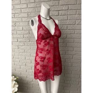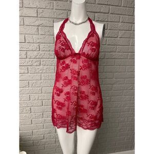 Victoria's Secret Women Red Lace Halter Back Teddy / Lingerie Size L