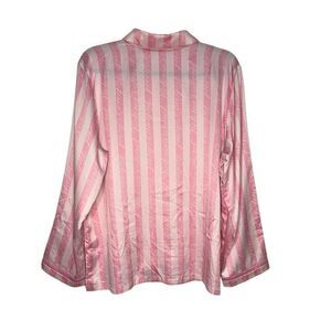 Victoria’s Secret Women’s Large Satin Pajama Top Pink Stripe Button Up Shirt