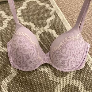 Victoria’s Secret bra, body by Victoria lined perfect coverage size 34DD the color is a light purple like a pastel purple color has an underwire super comfortable  in good preowned condition normal wear and tear. See pictures for more details