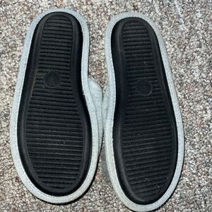 I may have wore these one time briefly in my house. Super cute grey with furry ball. Bottoms are anti skid. Size Large. Jersey material