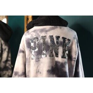 Victoria’s Secrets PINK Bling Sherpa Reversible Jacket Black White Tie Dye Sz S