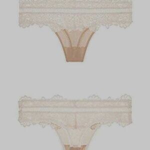 Victorias Secrets Sexy White Embroidery & Nude Mesh Wide Side Thong Panty