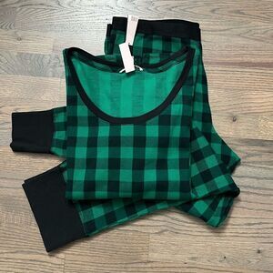 Victoria’s Secret thermal pajama set black green buffalo check plaid XXl