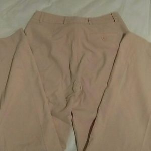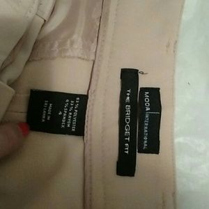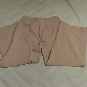 These are too big for me now. They an inch too long for me and I'm 5'4 . They have a wide leg and fake front pockets and one real pocket in the back. These are a blush color, not bright pink. There are no stains. The lighting is weird in these pics from my phone.