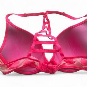Victorias secret PINK lace bra 34C EUC Pink /tan Floral Push up under wire Sexy