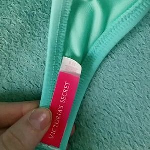 32B Victorias Secret coral blue bandeau top with built in under wire, slight push up. comes with strap to make a halter top that's removable. small stain on front as pictured from sun tan lotion.only worn 2 times. only selling because it's now too small for me