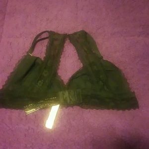 Size large black lace bralet. Razor back lace detail in back. Adjustable straps and brand new with tags.