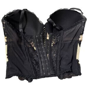 Victorias secret black & nude corset top lace tie up the front bra size 36D